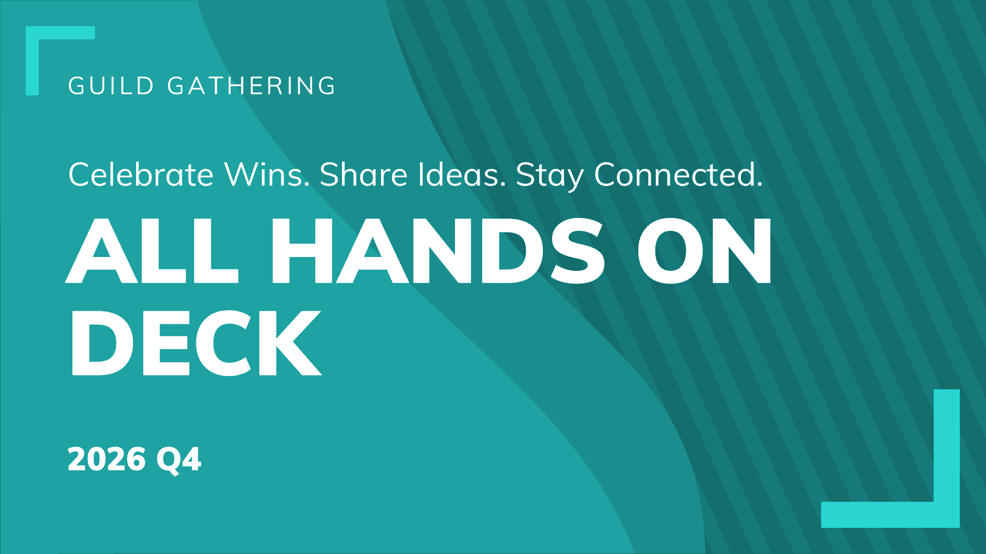 All Hands on Deck is our quarterly community catch-up for presentation professionals who are Presentation Guild members. This 60-minute session brings members together for board updates, announcements, quick spotlights, and shared wins across the Guild. It is a warm, inclusive space designed to keep everyone aligned, informed, and connected to the wider presentation community.